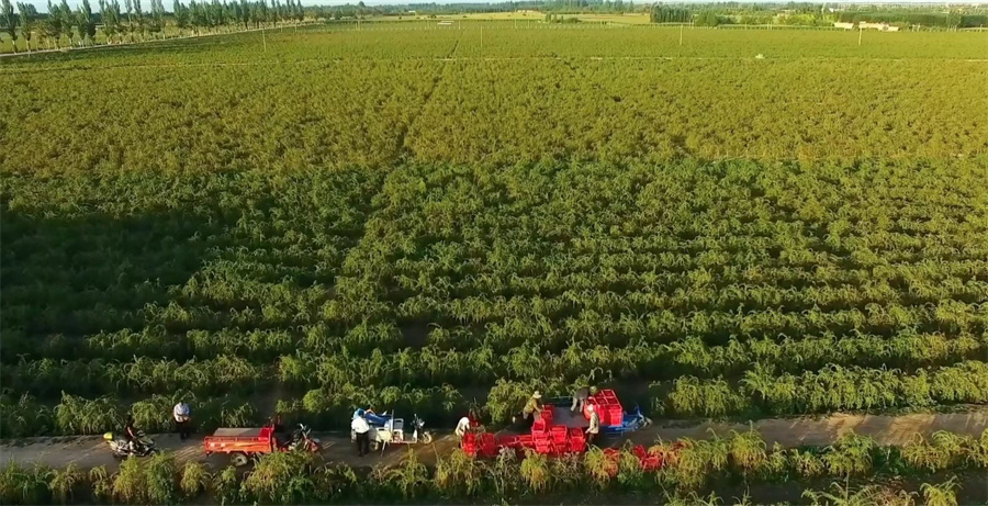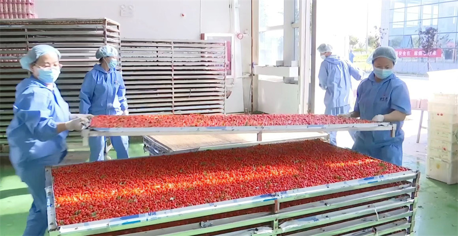 产业结构的升级也带来了上游链条的变化。精河县八家户是有名的“枸杞村”,在八家户,以往杞农通过枸杞晾晒的方式进行销售,费时费力。八家户农九队村民王海英说“以前都是卖晒干的枸杞,需要自己晾晒要操不少心。现在企业上门来收购鲜果,既不用我们来回奔波,利润还比卖干果高。”